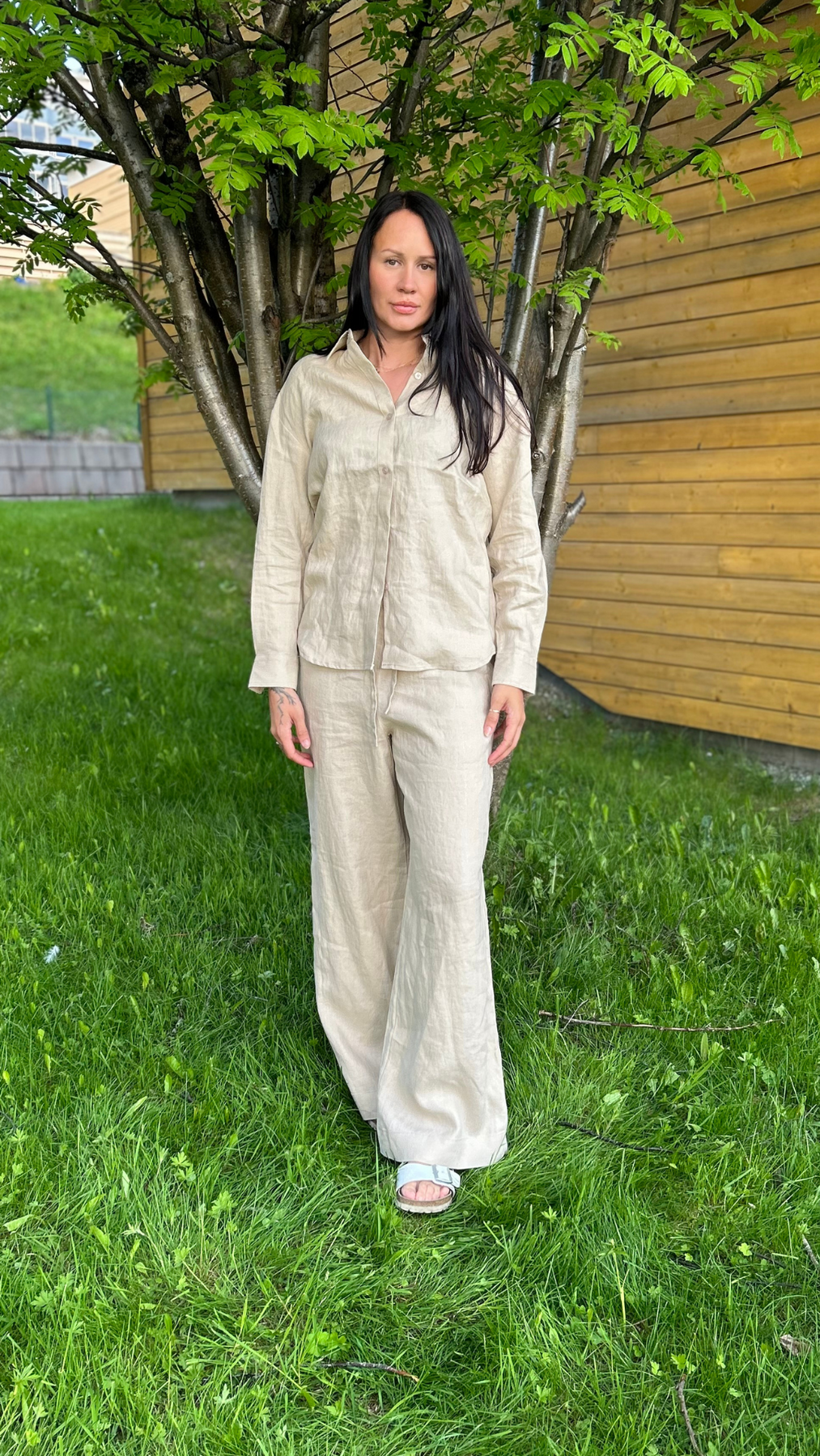 Alana hlače iz Creative Collective su bezvremenske i prozračne lanene hlače s opuštenim, ali sofisticiranim izgledom. Hlače imaju visok struk i ravne nogavice, što pruža laskavu siluetu. Lagana mješavina lana osigurava prozračnost i udobnost, savršeno za tople dane. Elastična linija struka straga omogućuje fleksibilno pristajanje, dok bočne džepove dodaju funkcionalnost. Svestrane hlače koje se lako mogu stilizirati i za casual i za elegantne prilike.