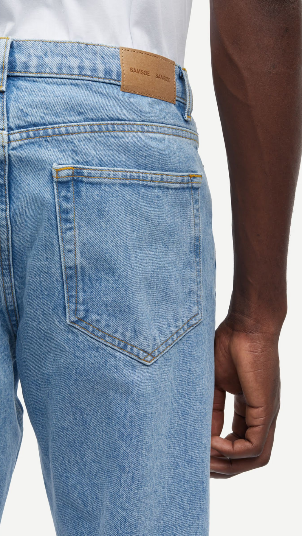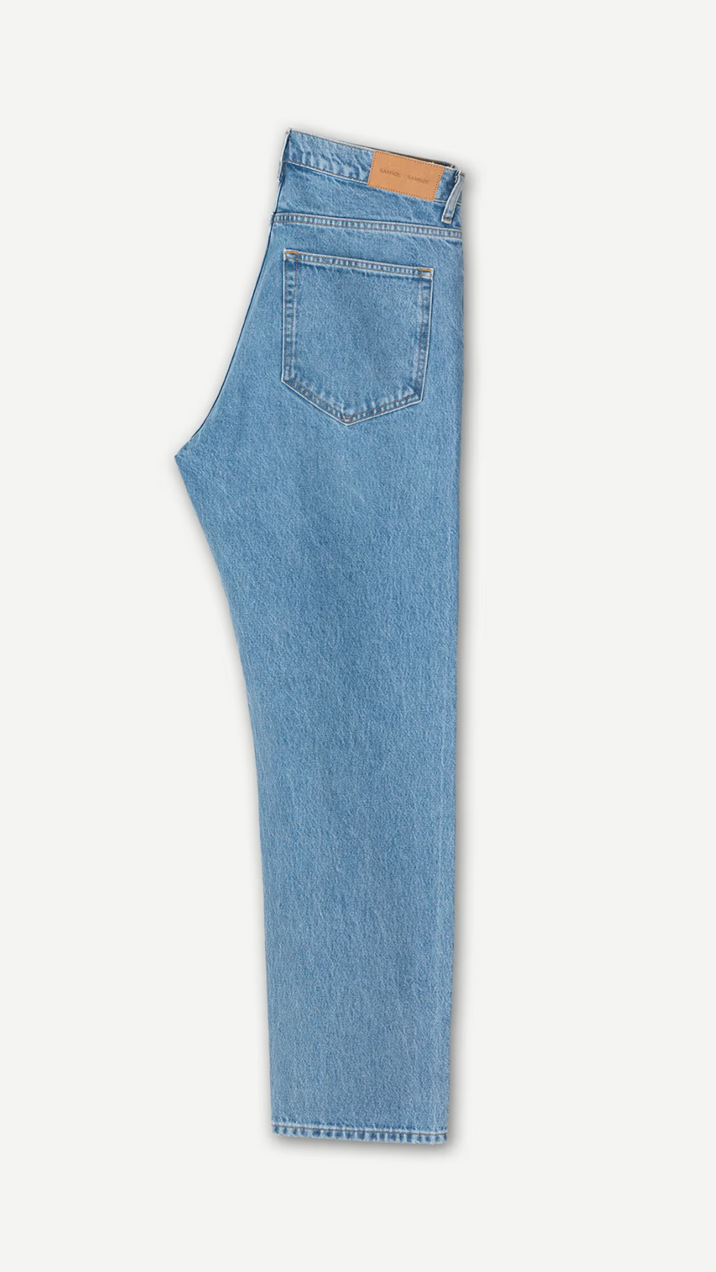 Traperice s opuštenim krojem i ravnim nogavicama. Zatvaraju se gumbom i patentnim zatvaračem. Model s 5 džepova. Petlje za remen. Napravljeno uglavnom od 100% organskog pamuka.