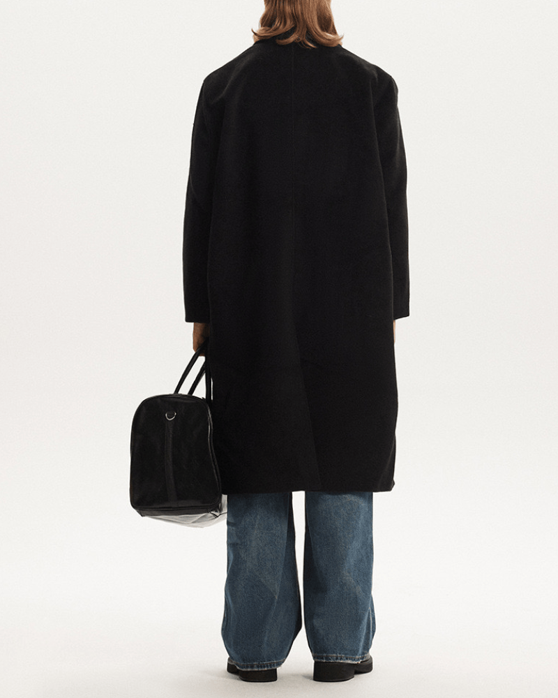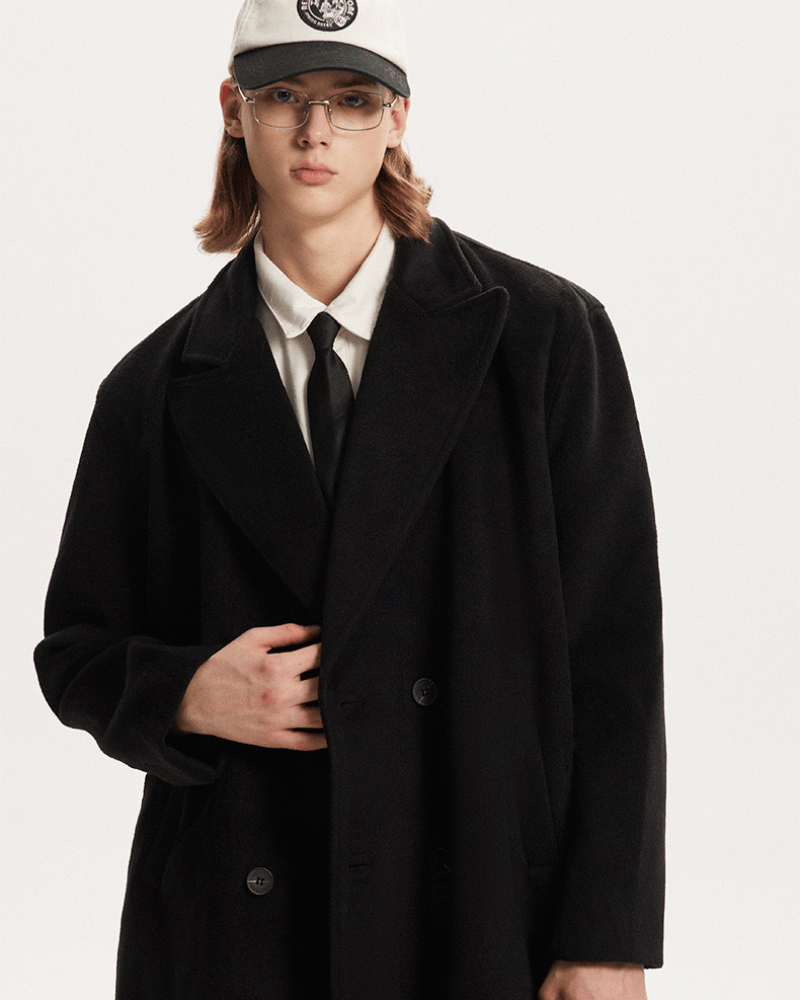 Vremenski nepromjenjiv i sofisticiran, ovaj crni dvoredni kaput izrađen je od premium vune koja nudi izvanrednu toplinu i strukturu. S oštrim reverom, čistim linijama i bočnim džepovima, pruža rafiniranu siluetu koja se bez napora uklapa preko odijela ili ležernih kombinacija. Dizajniran s punom podlogom za udobnost i izdržljivost, to je osnovni komad vanjske odjeće za dotjeranu zimsku garderobu.