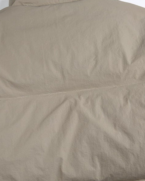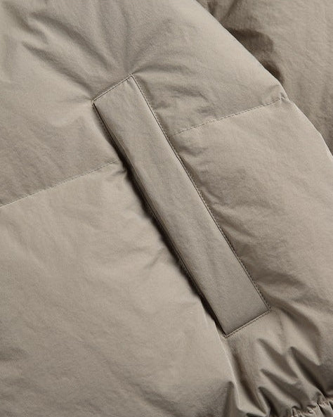 Njegov obavijajući oblik i konstrukcija s visokim ovratnikom zadržavaju toplinu, dok vanjska ljuska nudi mat, beztežinski osjećaj. Labavi uniseks kroj omogućuje generozno slojevanje bez gubitka proporcije, što ga čini idealnim od svježih jutara do kasnih noćnih šetnji gradom. Svaki šav je pažljivo postavljen kako bi se stvorila ravnoteža između zaštite i elegancije.