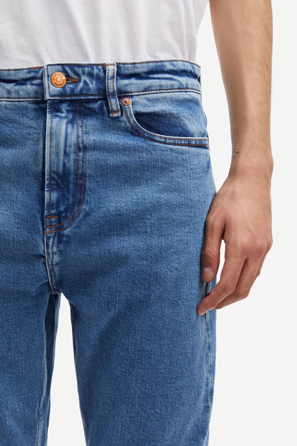 • Model nosi veličinu 32/32 i visok je 188 cm