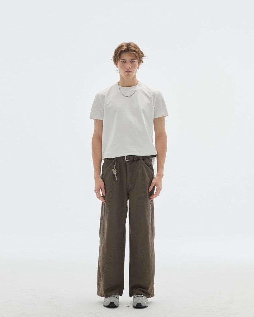 Kinvara Straight-Work Overall reinterpretira japansku vintage radnu odjeću s modernim, opuštenim senzibilitetom. Izrađeni od izdržljivog pamučnog kepera, nude strukturan, ali fluidan kroj koji se prirodno kreće s nositeljem. Čista, ravna silueta nogavica balansira funkcionalnost i proporciju, stvarajući svestranu osnovu za ležerne i uzvišene ulične stilove.