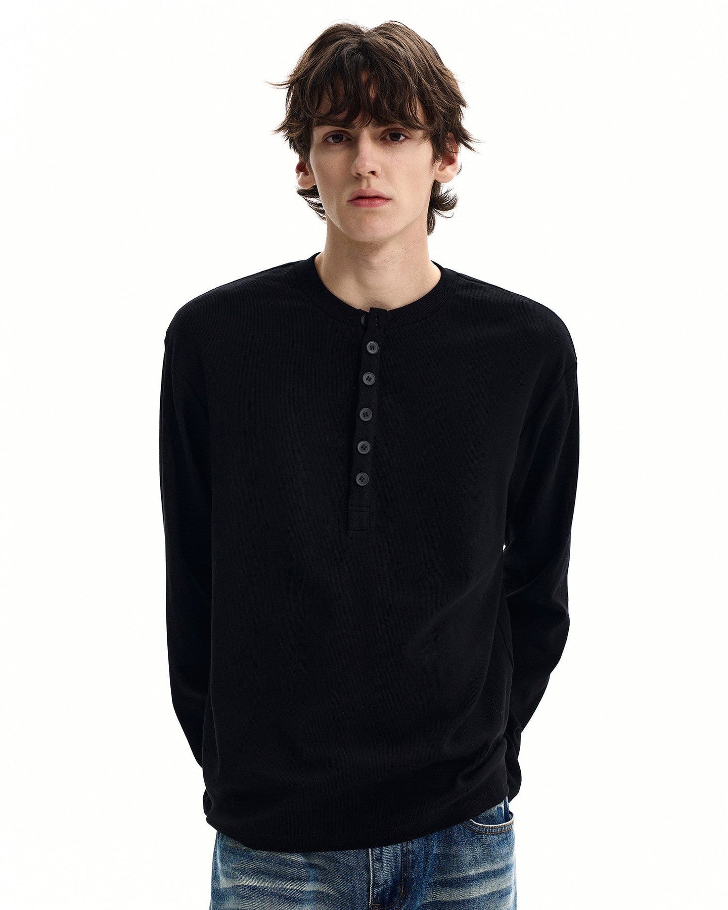 Klasični henley izrez s gumbima dodaje suptilnu strukturu
